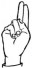 На ћирилици написано АНДЈЕЛИНА КЛЕПАЦ састоји се из 15 слова [?]. Исписано ћириличном једноручном азбуком за глувонеме: